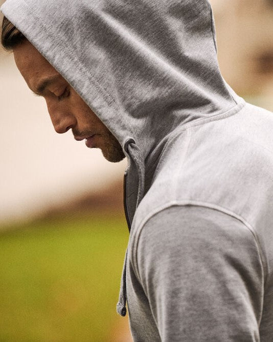 Men’s hooded jacket with metal zips at front and pockets. The heavy enzyme wash and terry cotton reverse gives this hoodie a soft to the touch feeling.